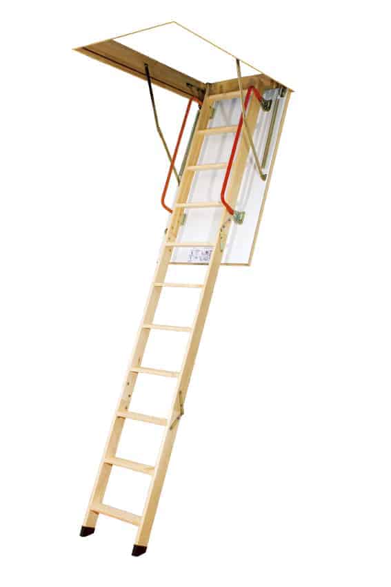 The Premium Timber Attic Ladder is a superior quality folding 3-section attic ladder. It is equipped with an aesthetically finished insulated hatch in white and accessories enabling comfortable loft ladder usage. Steps protrude from the stringers facilitating climbing the ladder.